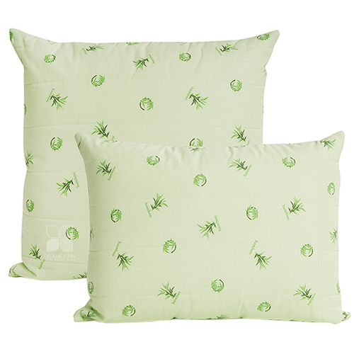 Особенностью подушки является стеганый чехол на молнии, это позволяет регулировать высоту и мягкость подушки. В качестве наполнителя используется искусственный лебяжий пух и бамбуковое волокно, подушка выполнена из ткани поплин (100% хлопок) салатового цвета с бамбуковым рисунком, фирменная упаковка конверт ПВД, спанбонд.